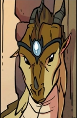 Queen Oasis had obsidian-black eyes, a narrow snake-like face, and a dark tail barb.[2] She wore a black band of onyx embedded with diamonds around her head[3] as well as keys that opened the doors to her treasure room.[4] She was even larger than Burn.[5]